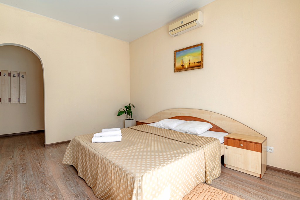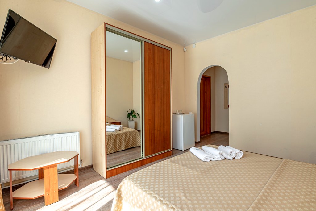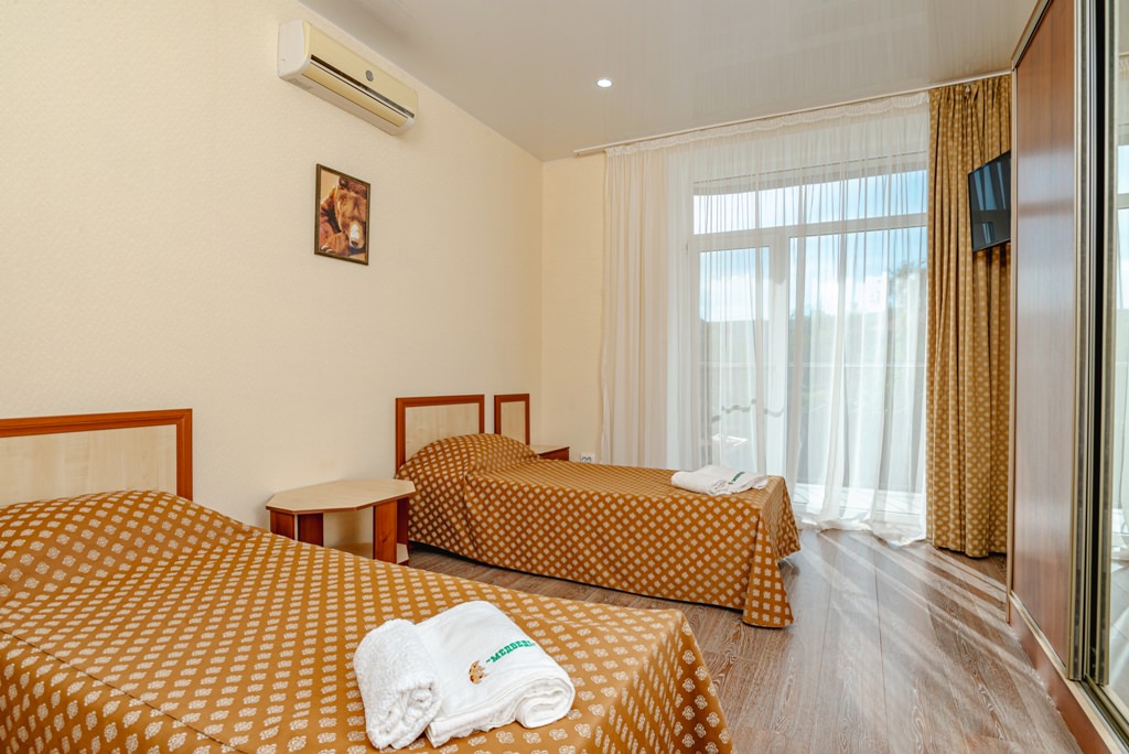 От 17 до 23 м2 Вашей территории комфорта. Душ в номере, просторный балкон и успокаивающие тона номера. Номер рассчитан на двух отдыхающих с возможностью дополнительного размещения еще одного человека. ✓ Одна двуспальная или две односпальные кровати. ✓ Санузел: душевая кабина, умывальник, туалет. ✓ Просторный балкон с сушилкой для белья. ✓ Кондиционер. ✓ Отопление. ✓ Шкаф-купе со встроенным сейфом. ✓ ТВ (кабельное телевидение). ✓ Холодильник. ✓ Прикроватные тумбочки и журнальный столик. ✓ Полотенца: душ - 2 шт., лицо - 2 шт. ✓ Набор средств личной гигиены: мыло. ✓ Возможность размещения 1 доп. места (еврораскладушка).